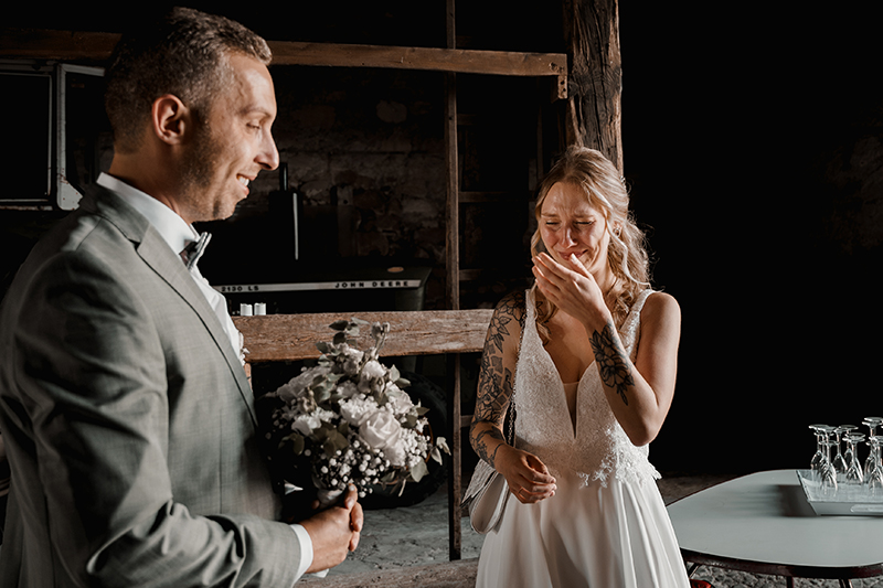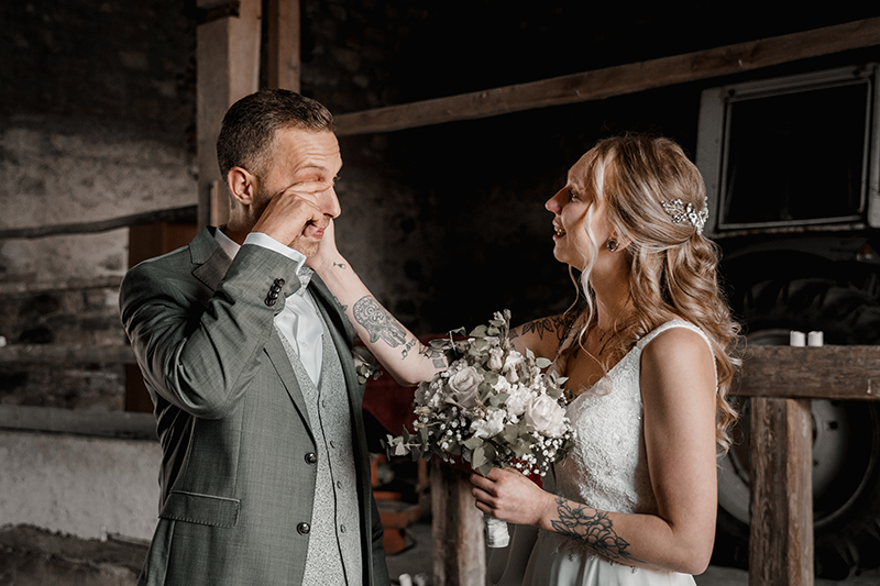Als Hochzeitsfotografin für diese goldige Brautpaar durfte ich einmalige und spannende Momente festhalten: Die Nerven liegen eh schon blank und dann steht sie da, die aufgeregte Braut und der nervöse Bräutigam – dazwischen: ein Scheunentor.