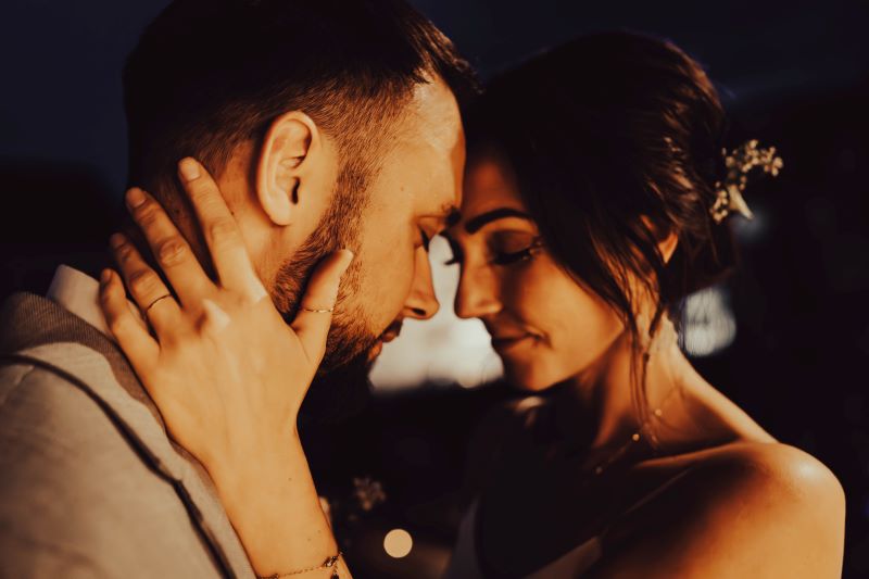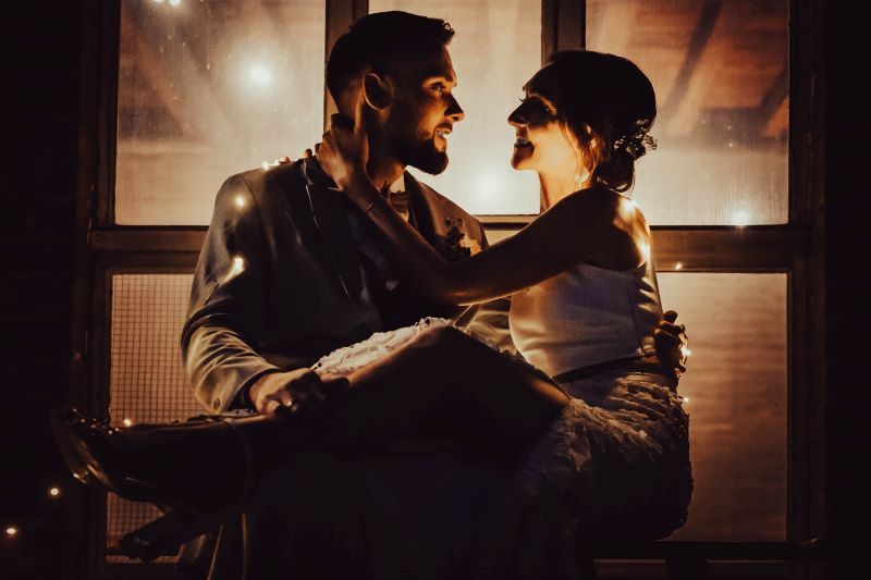 Bei den wunderhübschen Brautpaar haben wir einfach improvisiert und ich habe sie abends kurz entführt und mit Hilfe einer Lichterkette für den besonderen Effekt diese Aufnahmen gemacht. Diese Momente der Ruhe zwischen den Beiden kommt durch die Nighttime Portraits gut rüber!